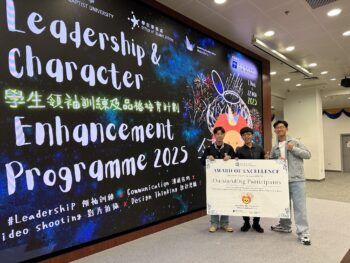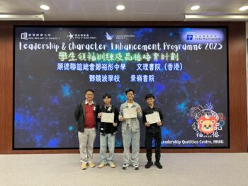 本校總領袖生5E陳柏穎、5E黃棹楓、5D許梓樂獲校方推薦,參加由香港浸會大學舉辦的「學生領袖訓練及品格培育計劃 2025」。